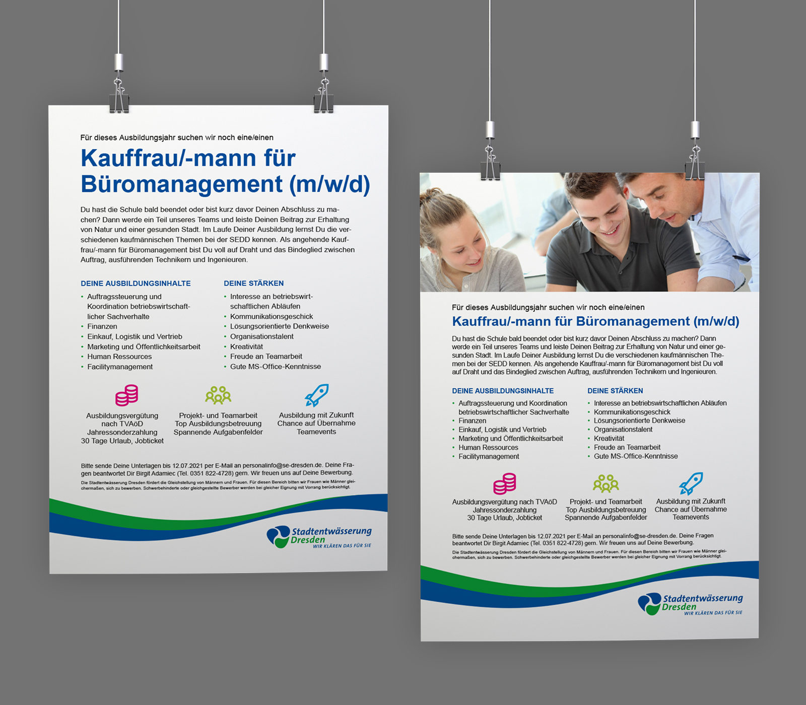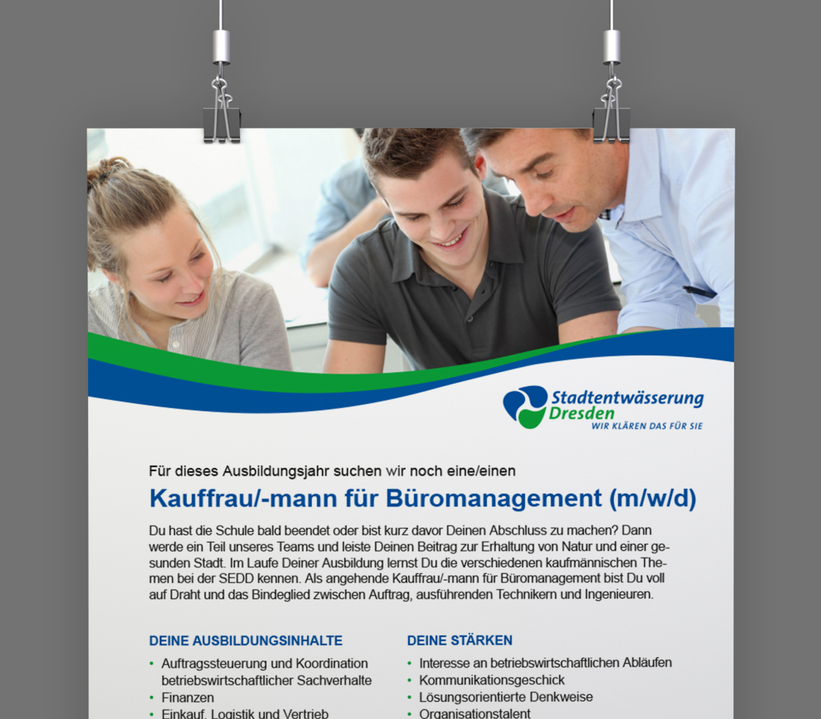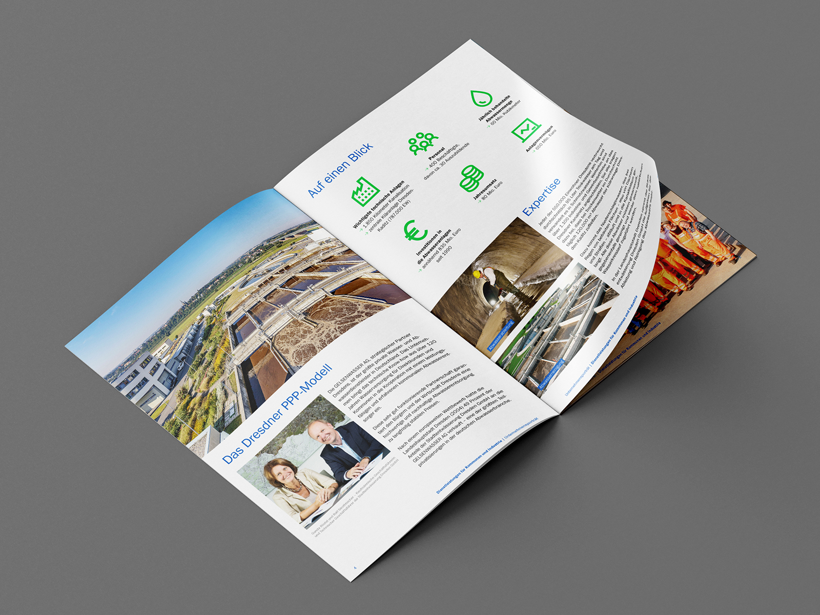 Für die Stadtentwässerung Dresden schufen wir im Zuge der Teilprivatisierung ein neues Logo. Danach systematisierten und renovierten wir das Corporate Design und entwickelten einen vielseitigen Grafikbaukasten zur Nutzung und Weiterentwicklung durch verschiedene Agenturen und inhouse-Teams.