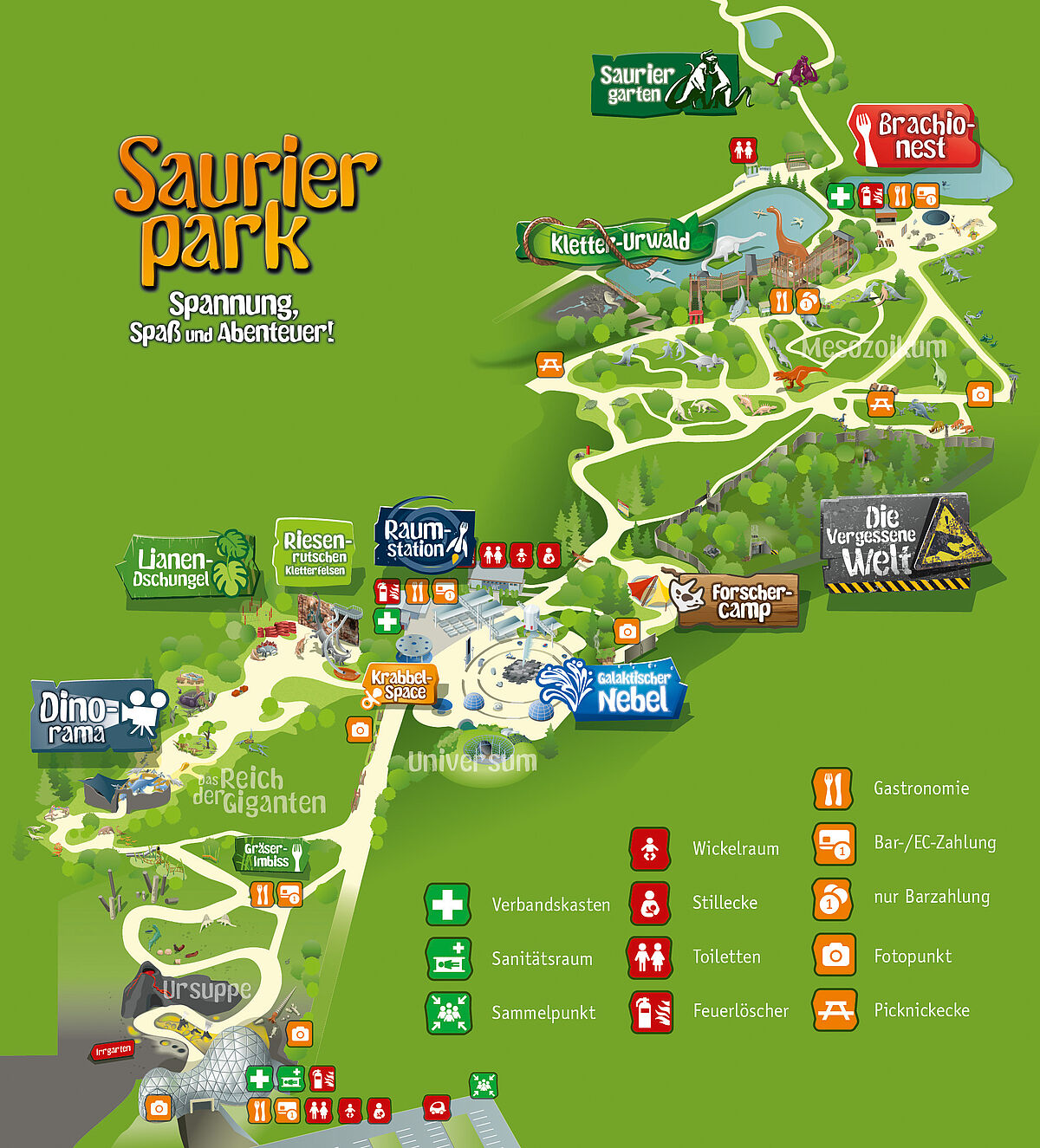 Der Parkplan dient der Orientierung der Besucher in mehreren Erscheinungsformen von Schild über Faltblatt bis App. Die naturalistische Vektoroptik realisiert mit Adobe Illustrator ermöglicht eine einfache Aktualisierung und eine verlustfreie Skalierung.